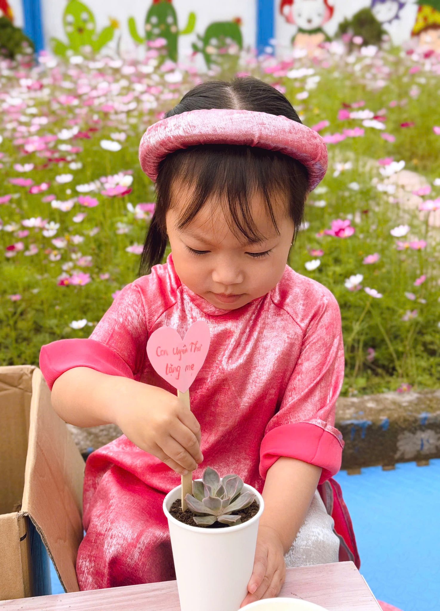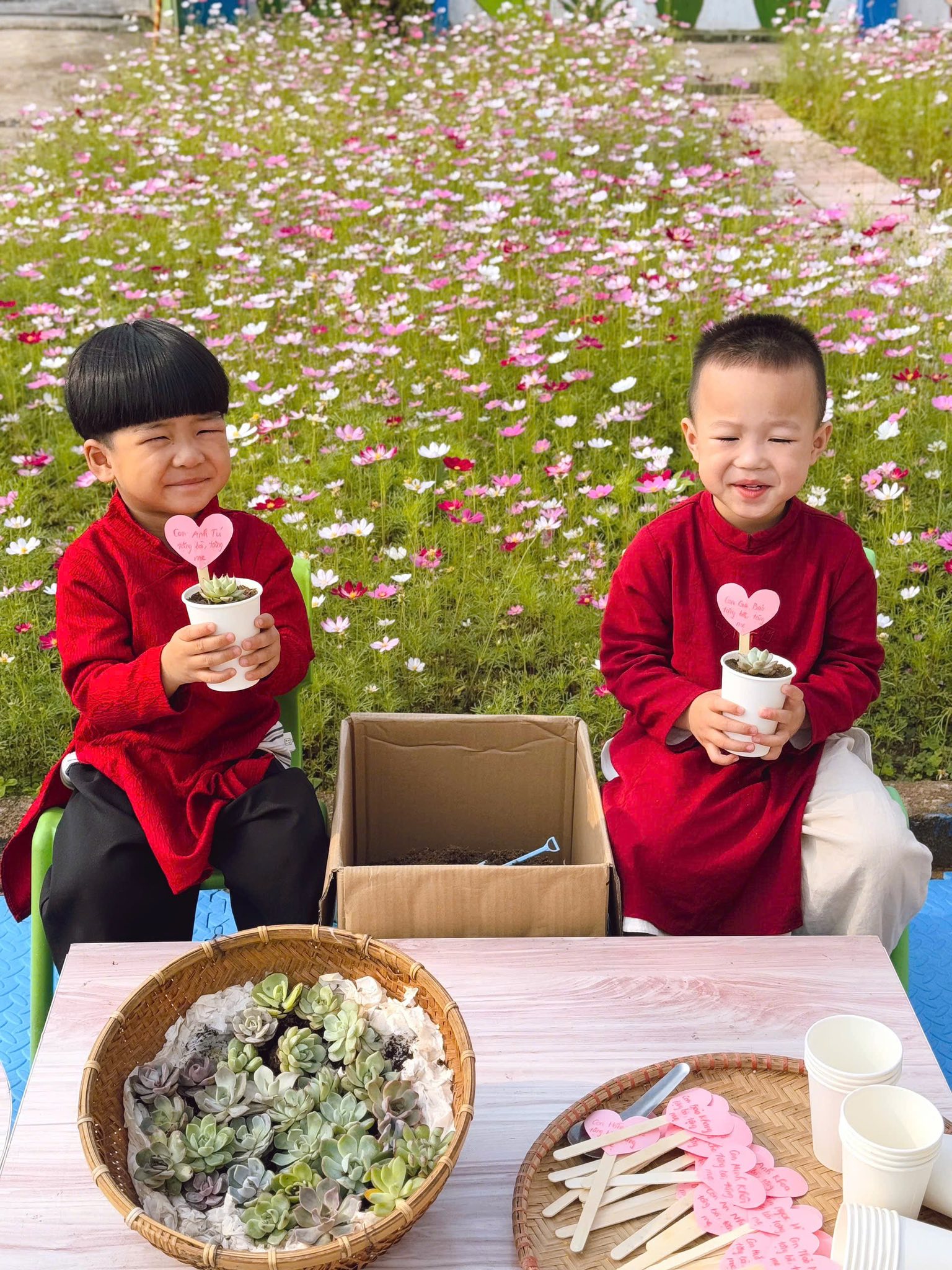 Dù đôi bàn tay còn nhỏ bé, nhưng các bé đã rất cố gắng và khéo léo để hoàn thành “món quà đặc biệt” dành tặng bà và mẹ. Những chậu sen đá xinh xắn không chỉ là sản phẩm của một hoạt động trải nghiệm mà còn chứa đựng tình cảm ngây thơ, trong sáng và yêu thương mà các con muốn gửi gắm tới những người phụ nữ thân yêu nhất trong gia đình.