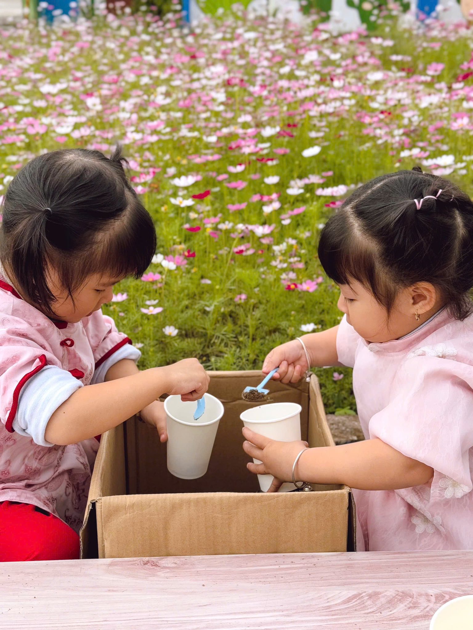 Thông qua hoạt động này, các bé được rèn luyện sự khéo léo của đôi tay, tính kiên nhẫn và sự tập trung, đồng thời bước đầu hình thành cho trẻ tình cảm yêu thương, lòng biết ơn đối với bà và mẹ – những người luôn dành cho các con sự chăm sóc, yêu thương và che chở mỗi ngày.