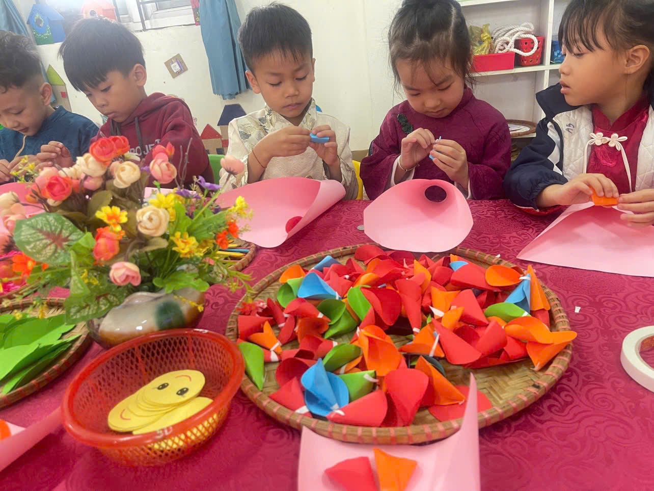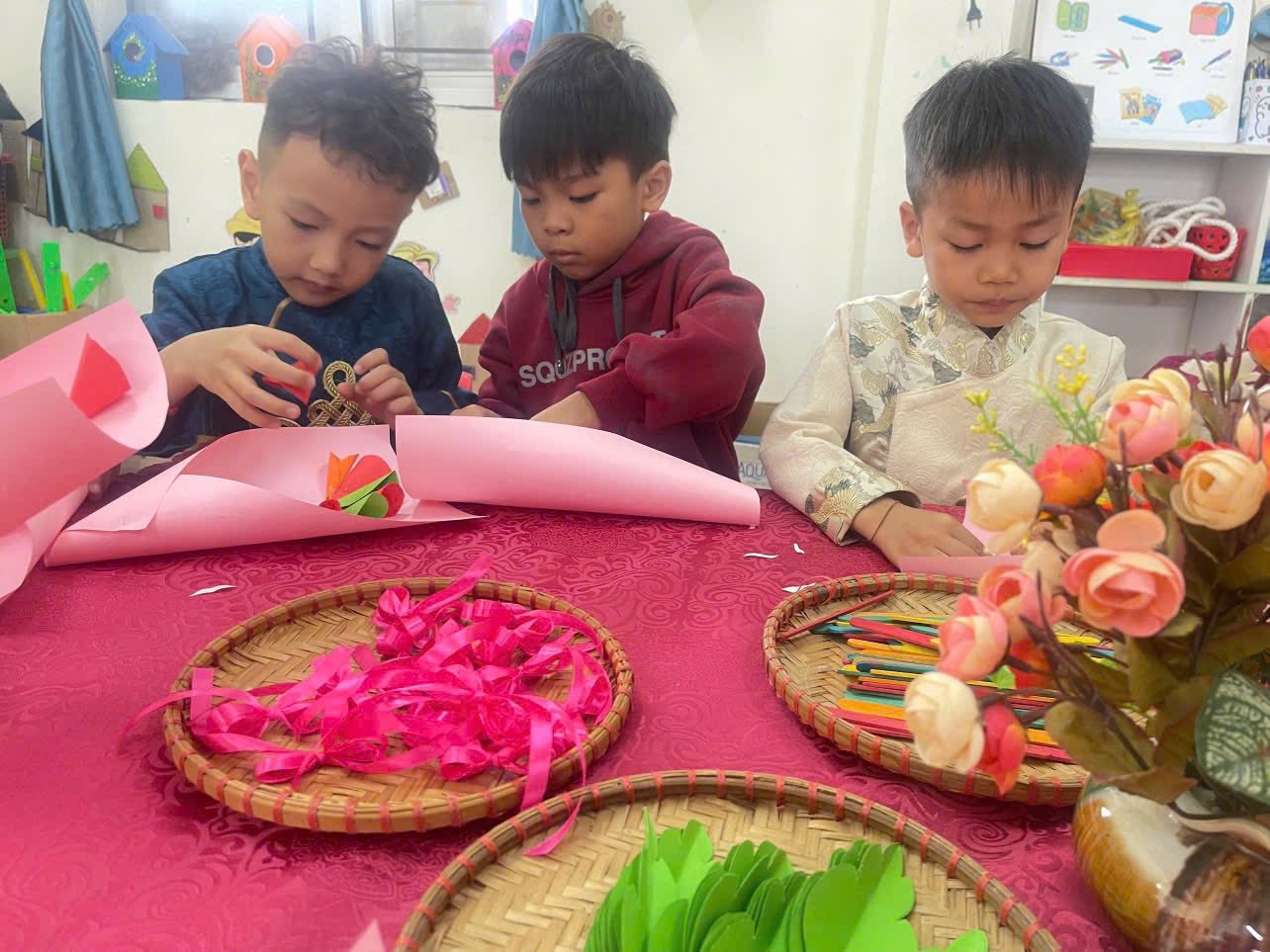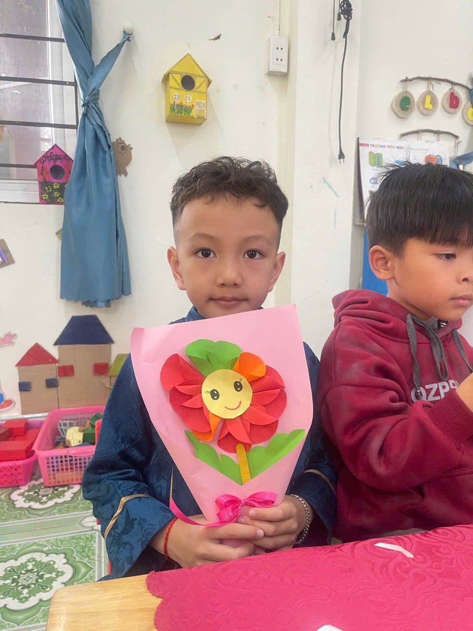Mỗi bông hoa là một món quà nhỏ nhưng chứa đựng tình yêu thương và sự biết ơn của các con dành cho mẹ – người luôn chăm sóc, yêu thương và đồng hành cùng các con mỗi ngày. Các con rất hào hứng, tập trung và vui vẻ khi tự tay hoàn thành món quà của mình.