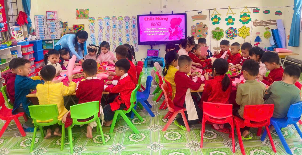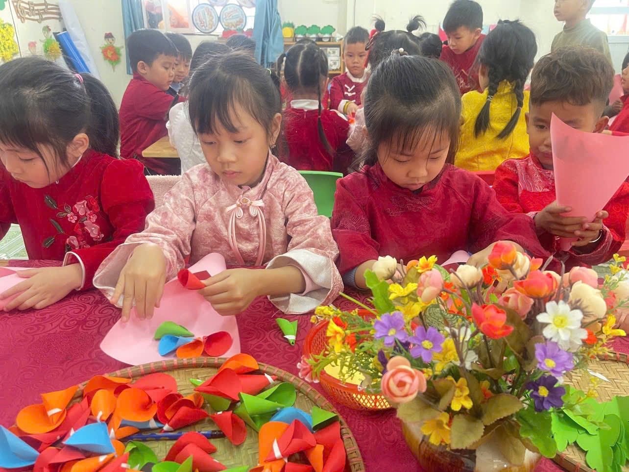 HOẠT ĐỘNG ” LÀM HOA TẶNG MẸ NHÂN NGÀY 8/3″ – LỚP 5-6 TUỔI A5, ĐIỂM TRƯỜNG QUẢNG ĐIỀN