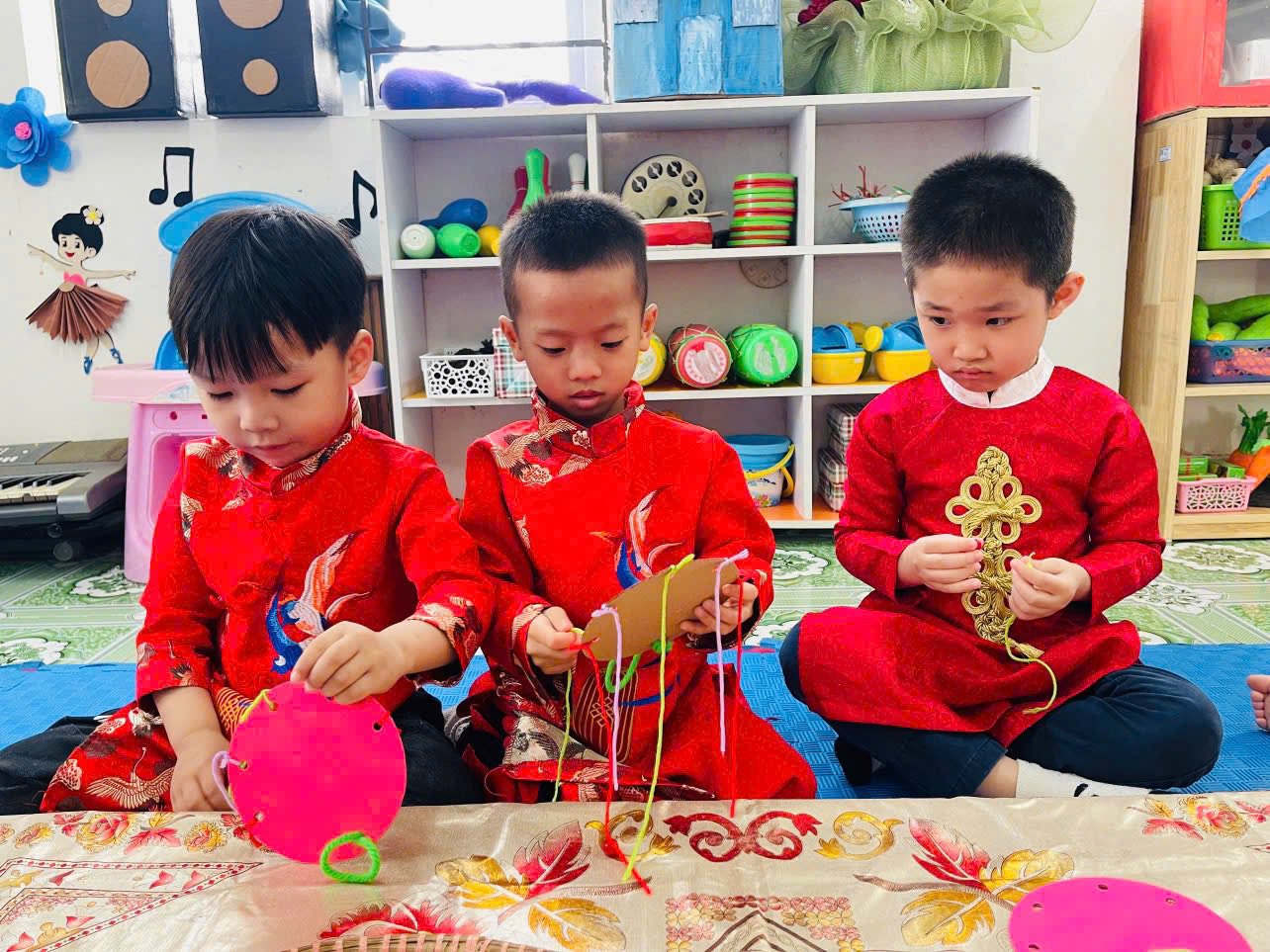 Trong hoạt động, các con được tự tay lựa chọn màu sắc, xâu hạt, gắn hoa và trang trí chiếc chuông gió của mình. Tuy còn nhỏ nhưng các bé rất khéo léo, chăm chú và hào hứng khi tạo ra những sản phẩm đáng yêu, chứa đựng tình cảm yêu thương gửi tới bà và mẹ.